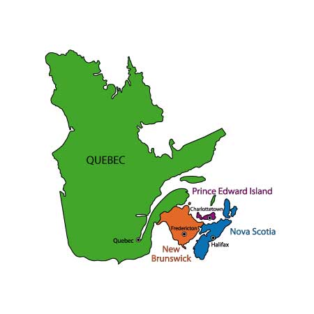 Quebec, Nova Scotia, New Brunswick, Prince Edward Island