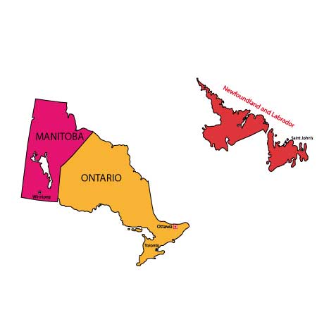 Manitoba, Newfoundland, Labrador, Ontario (southern, northern & southwest)